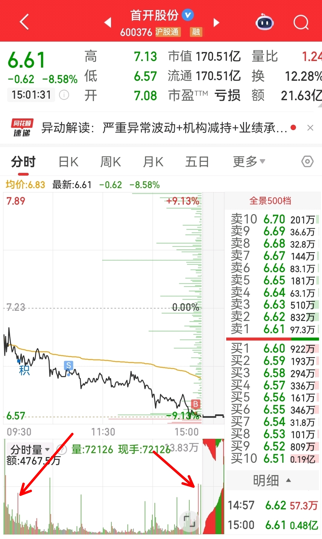 $首开股份(SH600376)$ 我来教大家看盘啦,为什么最后才买。因为那根放量红线