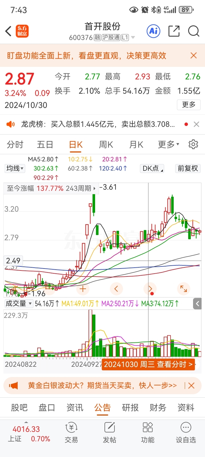 $首开股份(SH600376)$ 去年3季度亏那么多也没跌,还涨了,怕啥呢,今天风险已经提前预支了