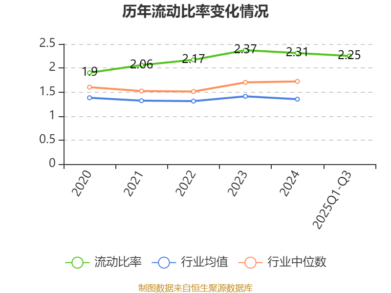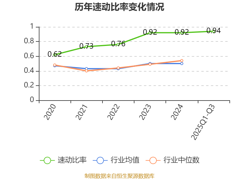2025年前三季度,公司流动比率为2.25,速动比率为0.94。