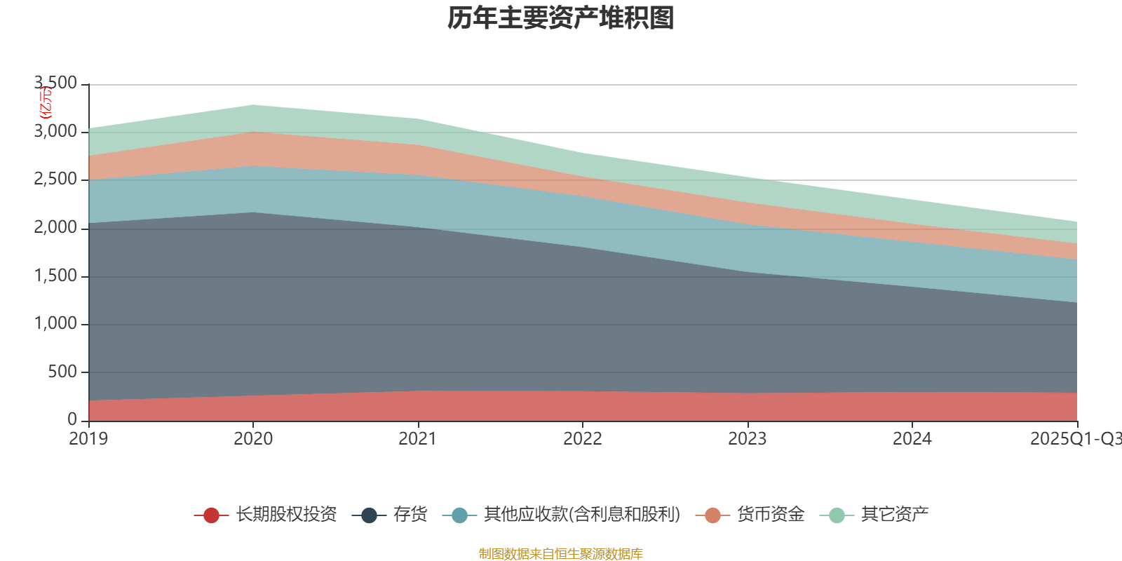 资产重大变化方面,截至2025年三季度末,公司存货较上年末减少14.23%,占公司总资产比重下降2.25个百分点;其他应收款(含利息和股利)较上年末减少4.01%,占公司总资产比重上升1.35个百分点;长期股权投资较上年末减少2.67%,占公司总资产比重上升1.06个百分点;长期应收款较上年末减少37.92%,占公司总资产比重下降0.3个百分点。