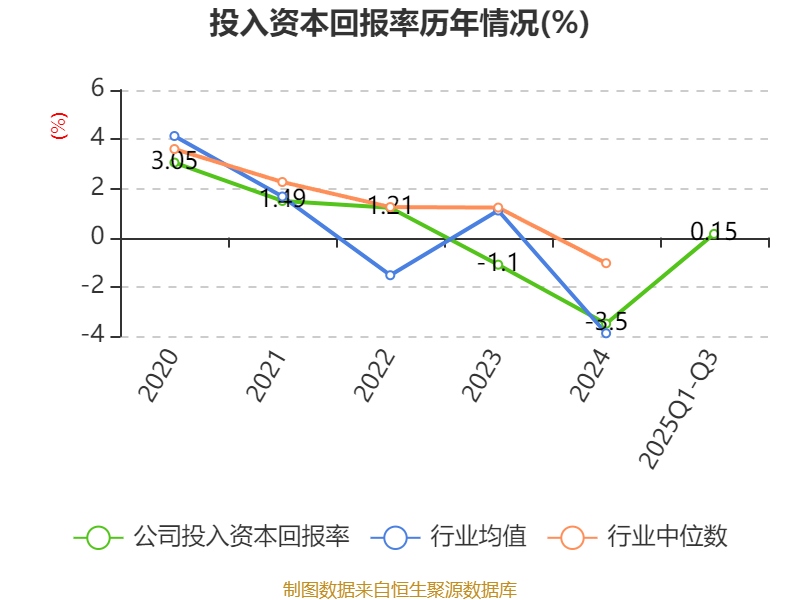 盈利能力方面, 2025年前三季度公司加权平均净资产收益率为-19.77%,同比上升8.25个百分点。公司2025年前三季度投入资本回报率为0.15%,较上年同期上升1.44个百分点。