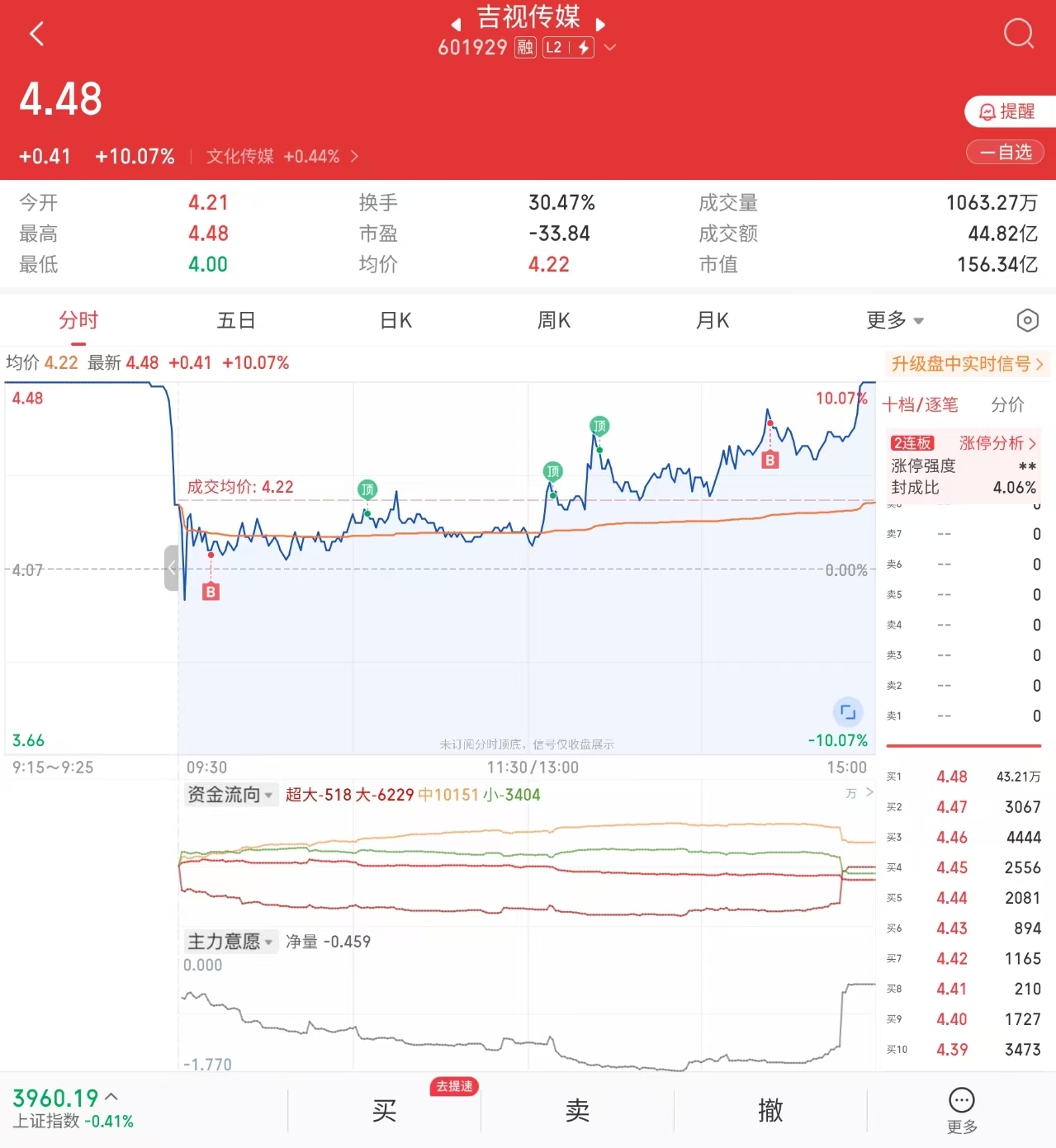 吉视的低吸与追涨,虽说盈利了但是尾盘应该放到板上打板的,最大的确定性其实是尾盘4.4附近,早盘低吸点位没太大问题,,,然后就是城建12.9跟13.25分两次清仓了,下午12.83追回一半,看明天,,水下可能会吸回