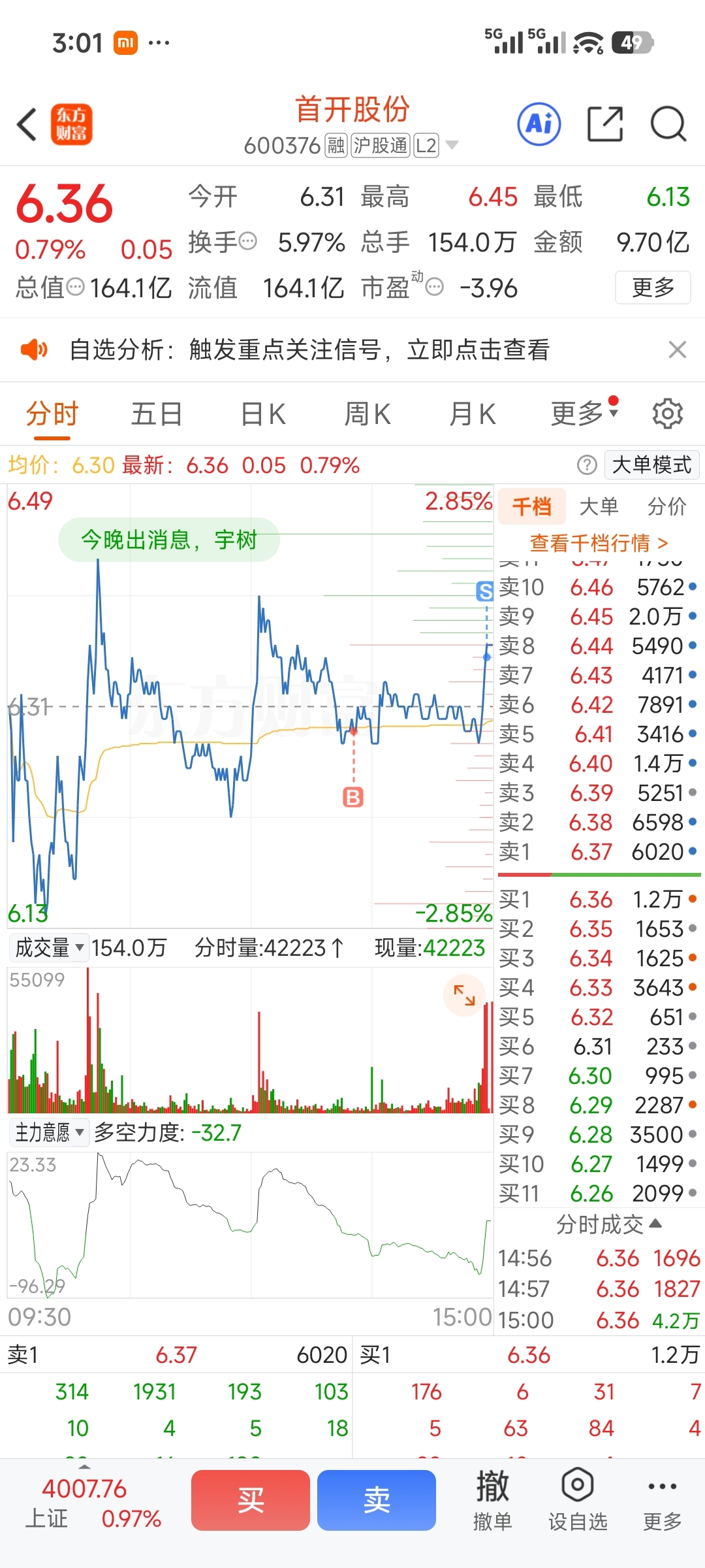 几乎清仓了,如果明天涨停,那就是我命中注定与你无缘
