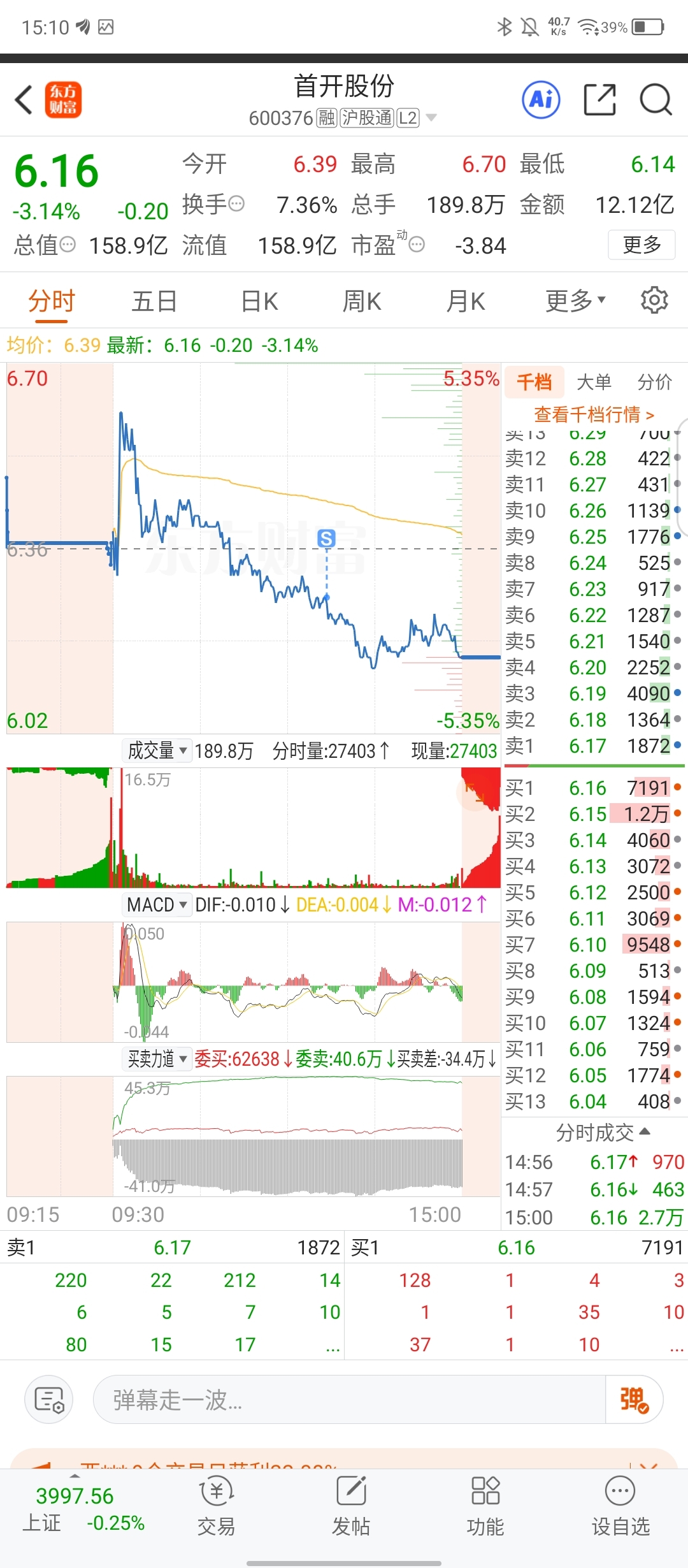 $首开股份(SH600376)$ 我是真服了,上次山子也是这样的走势6个点没卖收盘-2后面就暴雷吃了一个跌停,感觉首开周末有事