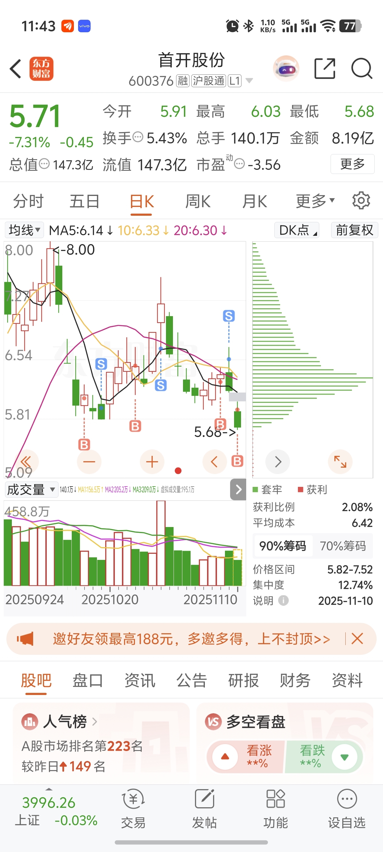 $首开股份(SH600376)$ 下午必反弹,买过太多票非常理解这个走法