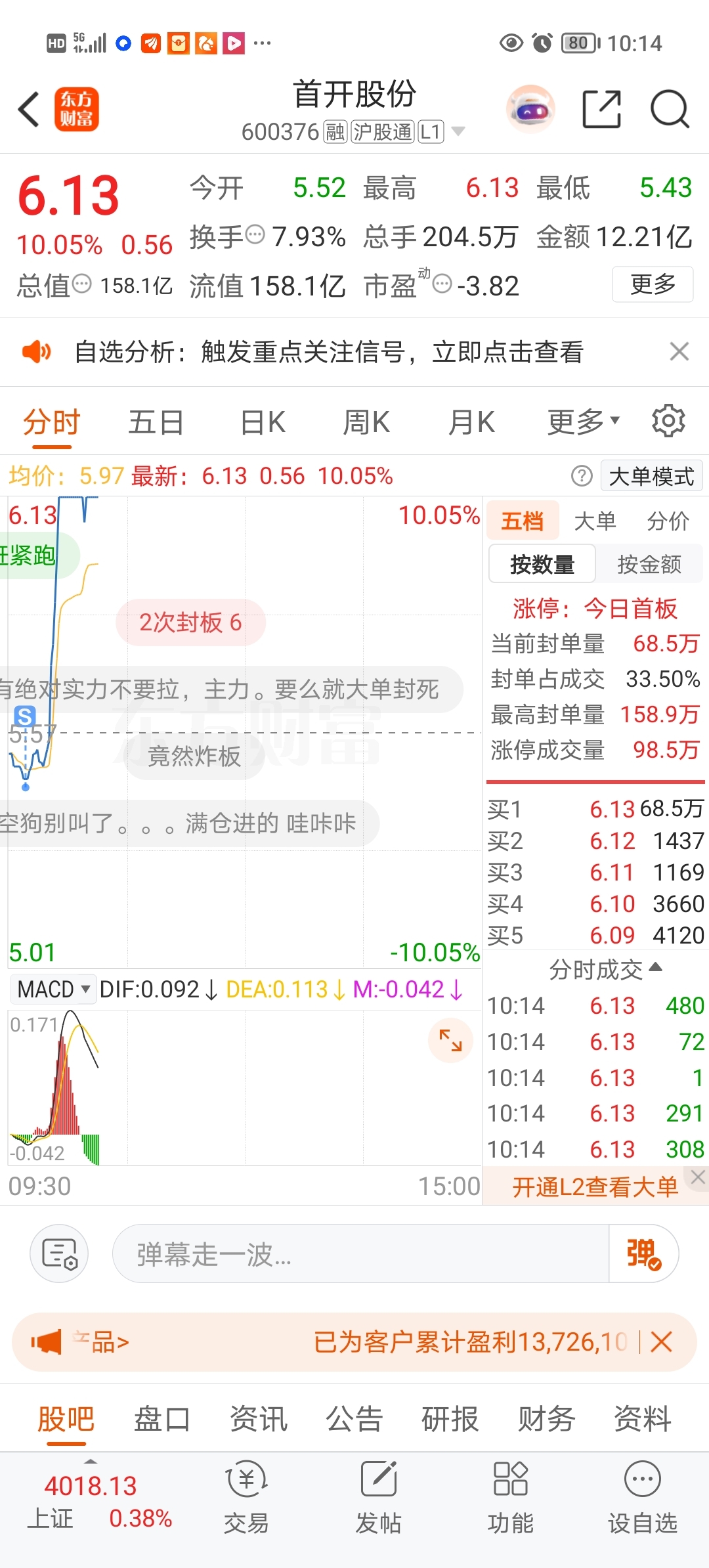 $首开股份(SH600376)$ 上周高点进,亏了十几个点,今天出了就来这,心累了