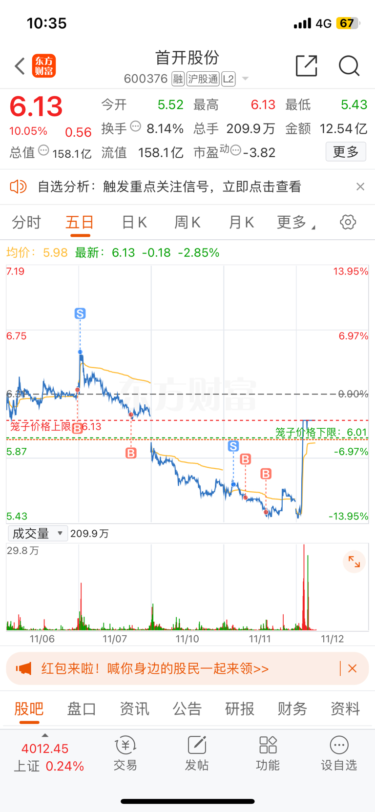 $首开股份(SH600376)$ 昨天做了个T还加了点仓回本了
