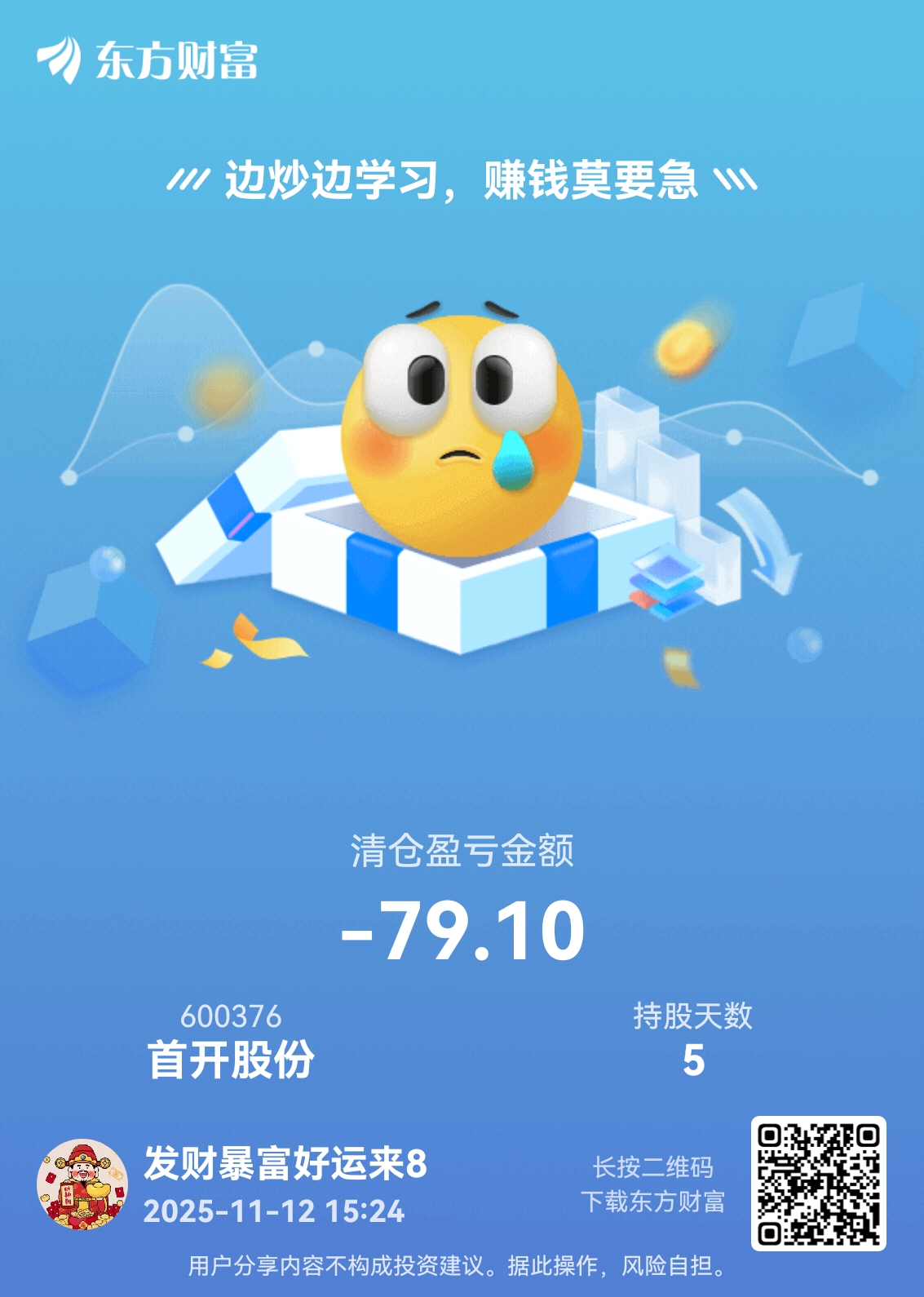 $首开股份(SH600376)$ 今天涨停都没回本,这几天跌怕了清仓了,