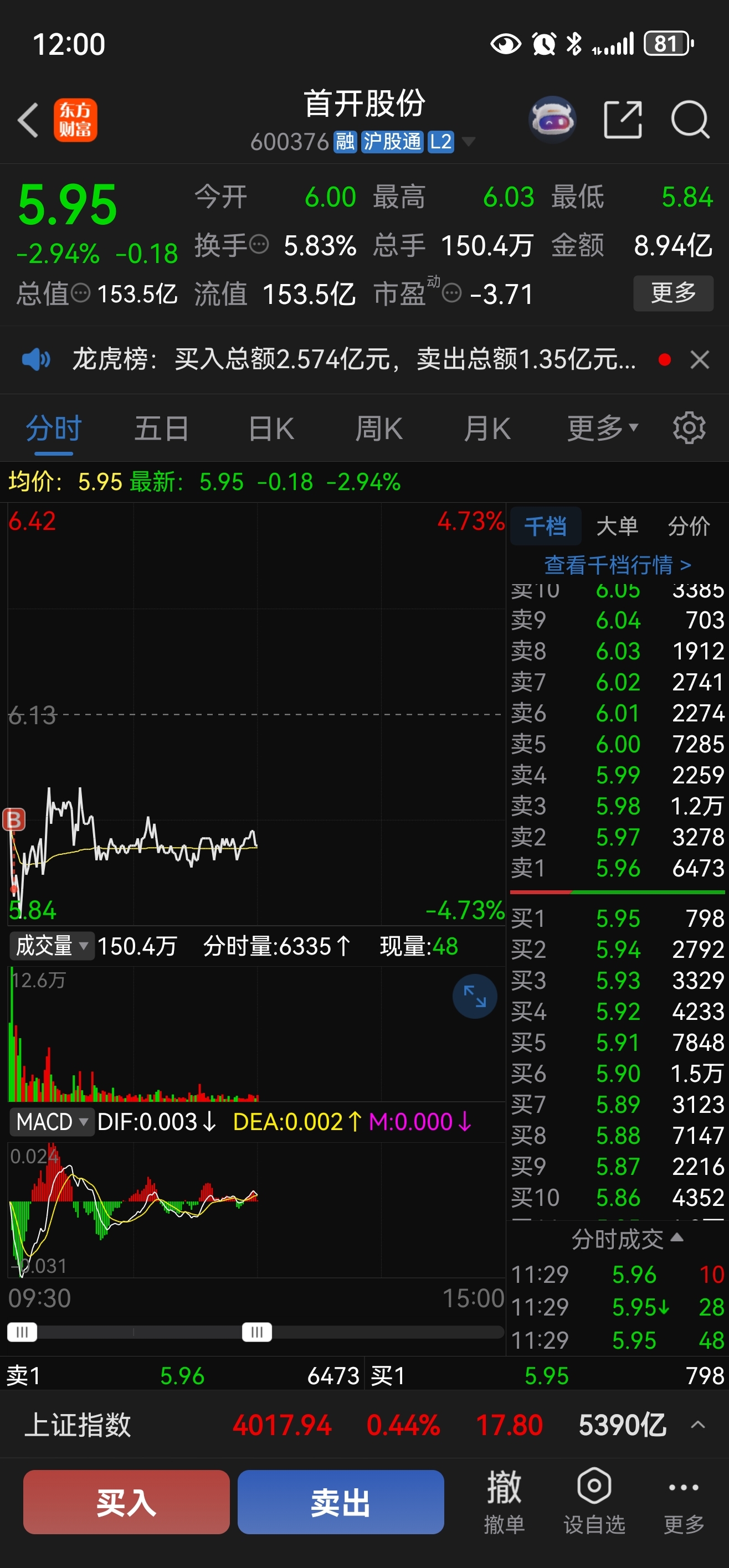 $首开股份(SH600376)$ 午间点评:今天低开,水下横盘,符合预期。合富中国继续打出新高度,今天连板股集体高潮,下午有消退的预期。首开还是动态操作,期望值放低,这样会快乐很多。预测下午应该会有一波拉升,强度不好说。
