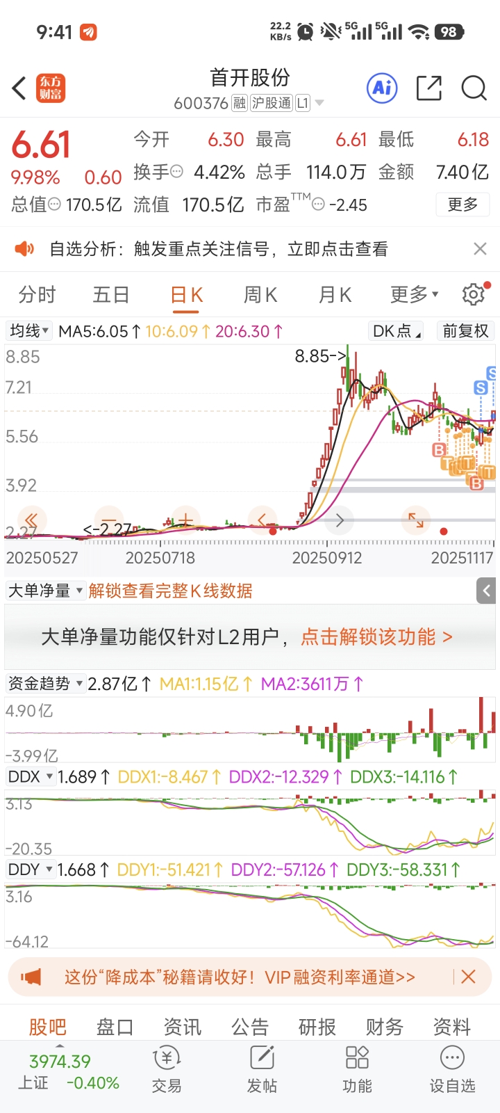 $首开股份(SH600376)$ 套了,大半个月!!在里面躲过了几次大跌!!没挣钱!!也回本了!