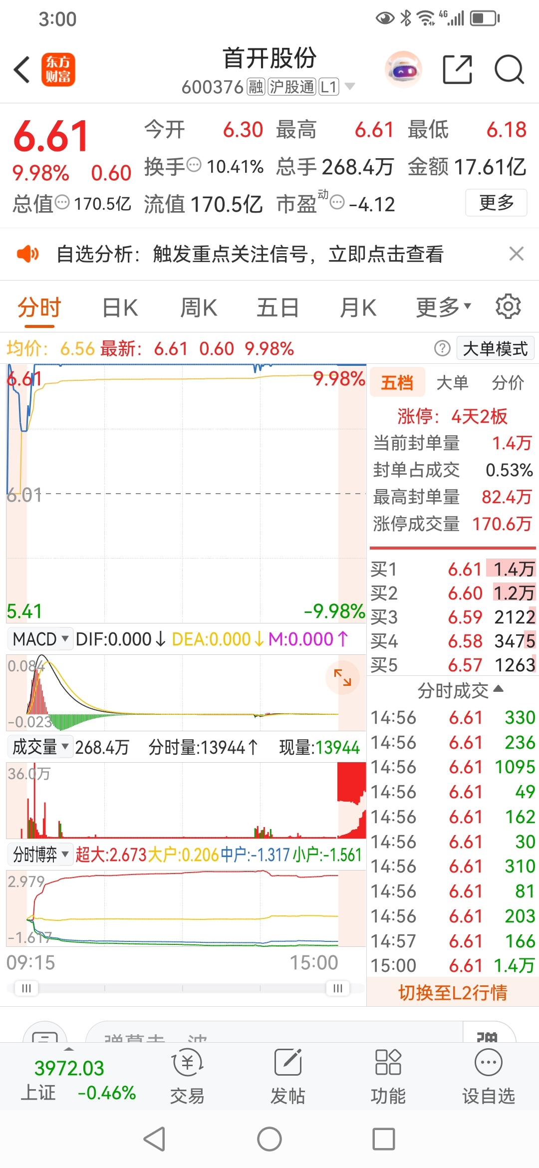 方军,今天操盘首开股份,放量涨停板,赚10%。看好。
