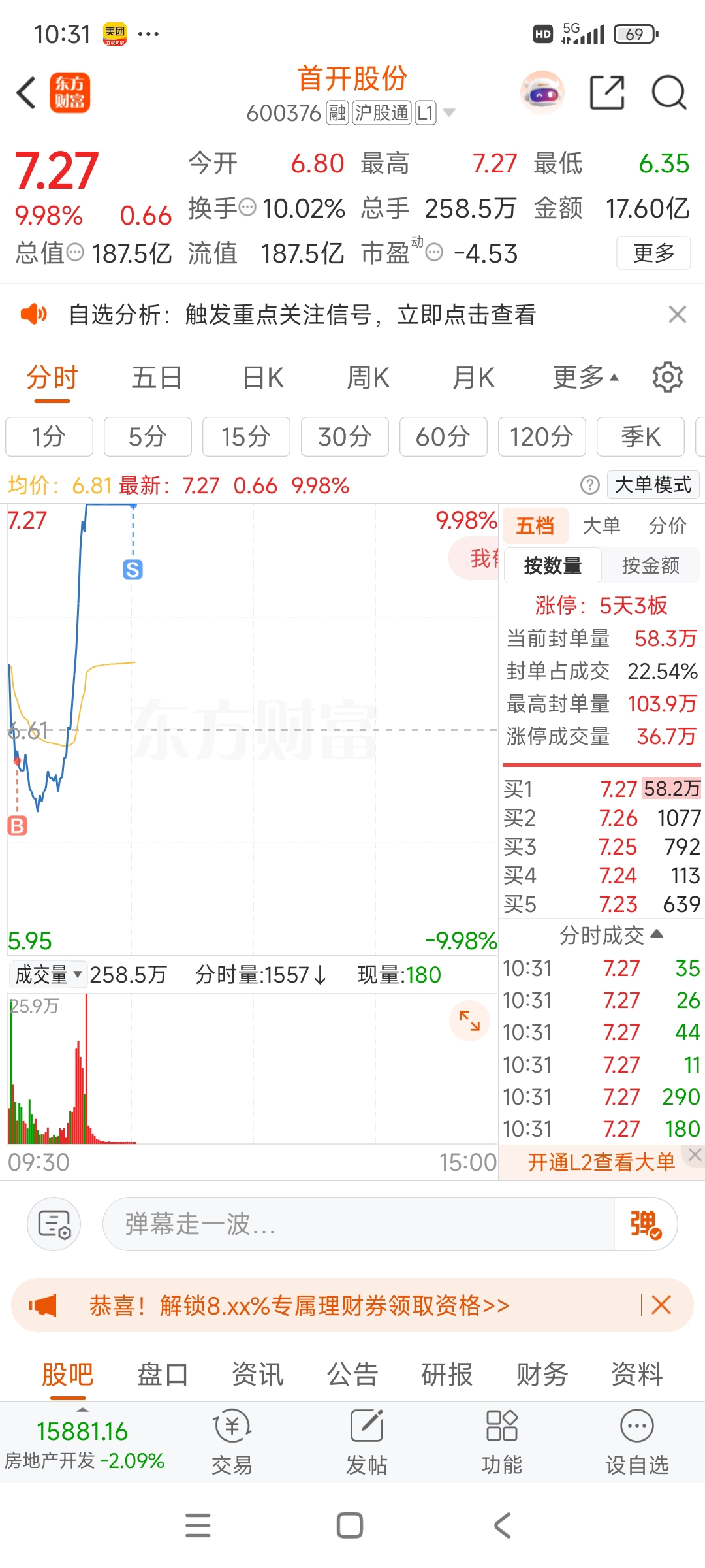 $首开股份(SH600376)$ 永不满仓,半仓轮动操作