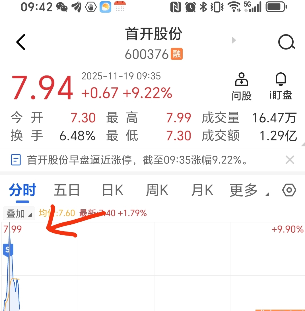 $首开股份(SH600376)$ 大家好,我就是那个7.94逃顶的大聪明