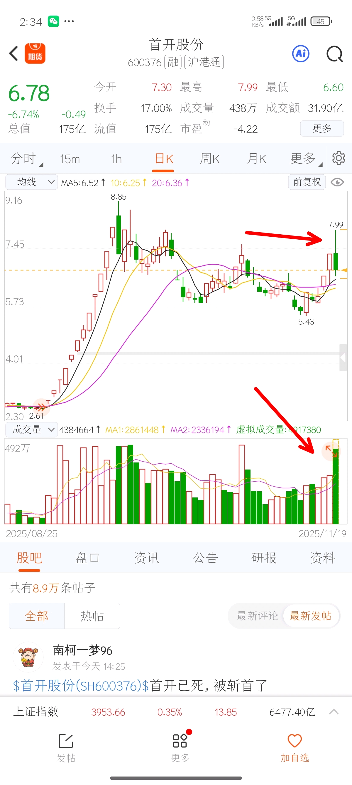 $首开股份(SH600376)$ 希望不大 吃面吃面放量下跌 那么长的上影线