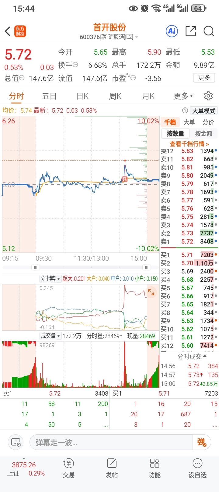 $首开股份(SH600376)$ 给我挂山顶了, 慢一秒都不能买这个点