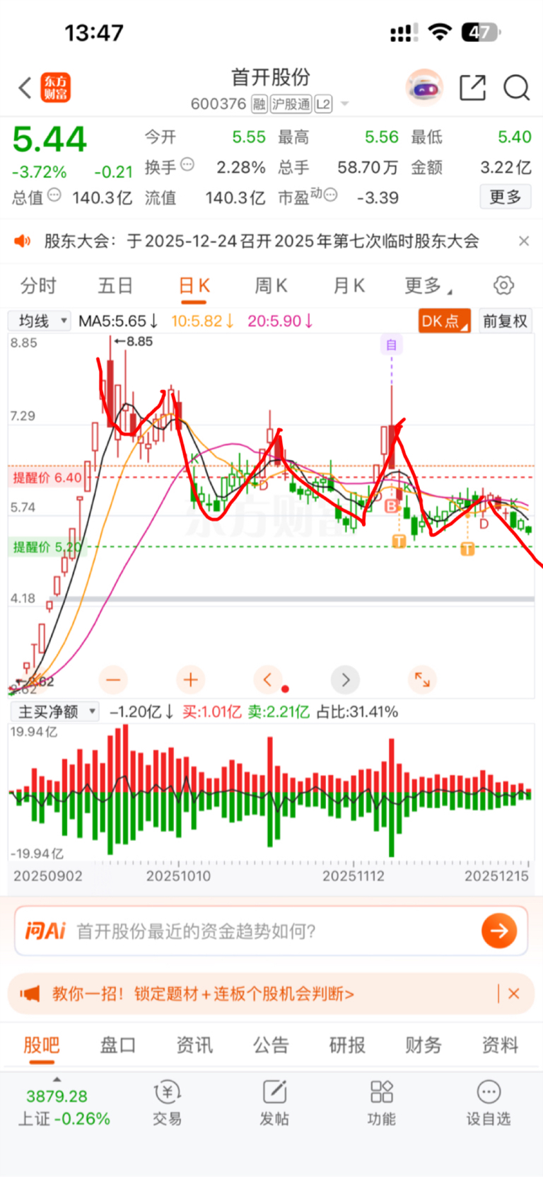 $首开股份(SH600376)$ 出货下跌趋势已经形成合