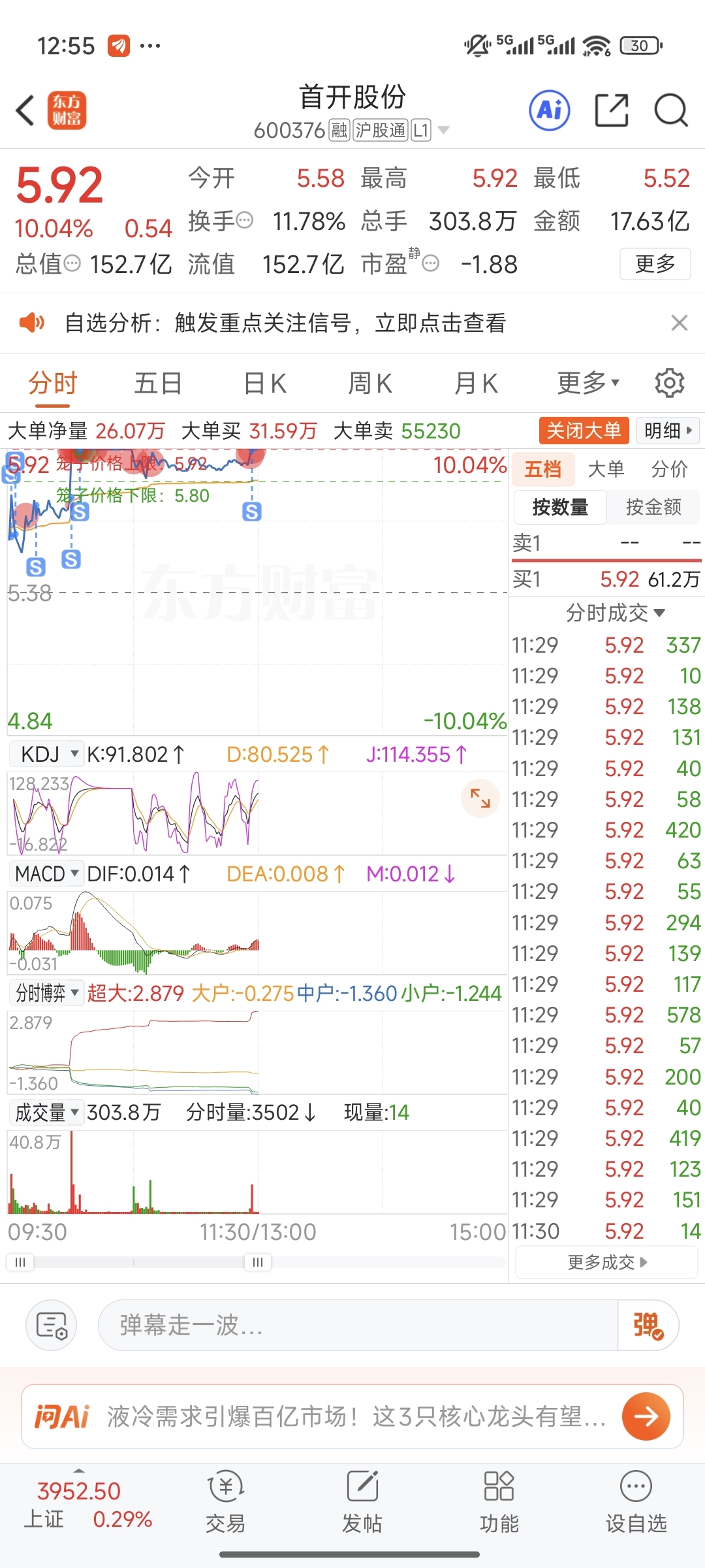 $首开股份(SH600376)$ 卖完了,明天礼拜五,会怎么样