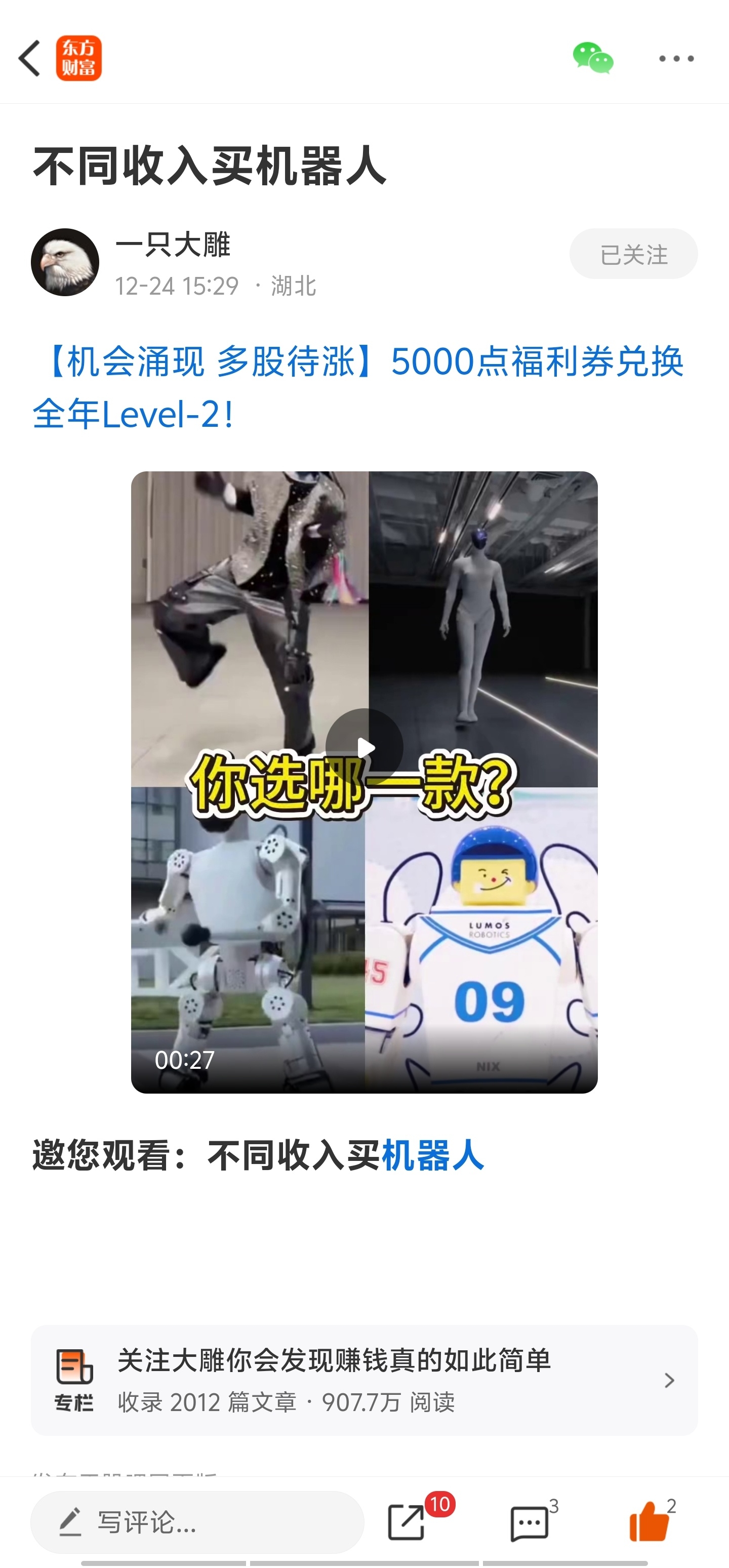 $首开股份(SH600376)$ $三花智控(SZ002050)$ $万向钱潮(SZ000559)$ 我对关注我的粉丝说的最多的一句话是,管住手后,去做自己看得懂的行情,如果能做到,那么赚钱就不难了!昨晚发了个机器人小视频,小姐姐看懂了,今天喜获涨停,不得不说,你太厉害了