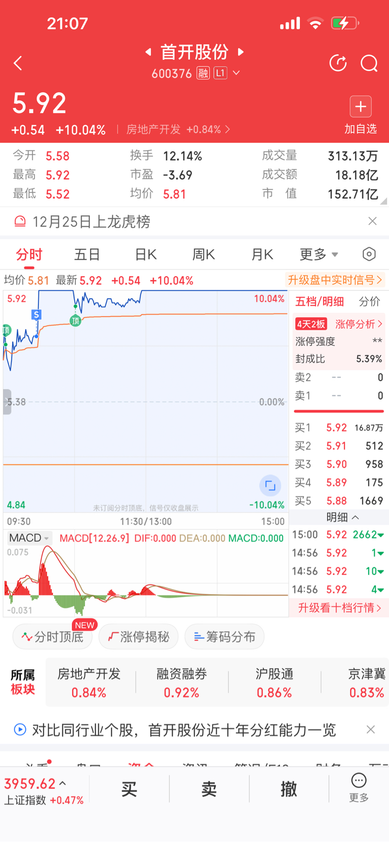 $首开股份(SH600376)$ 卖五贡献了一份力