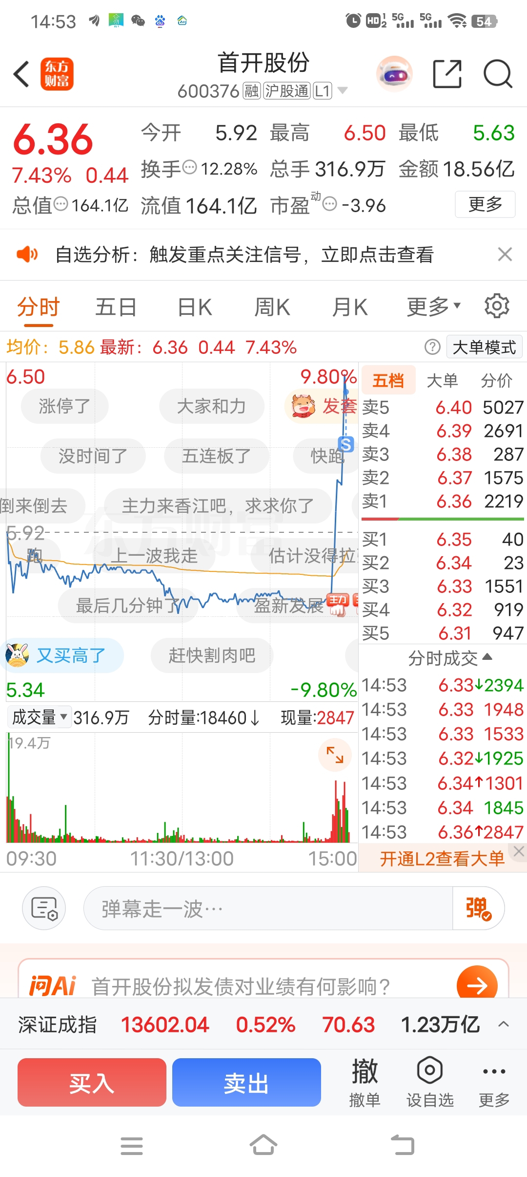 $首开股份(SH600376)$ 还好上午忍住了