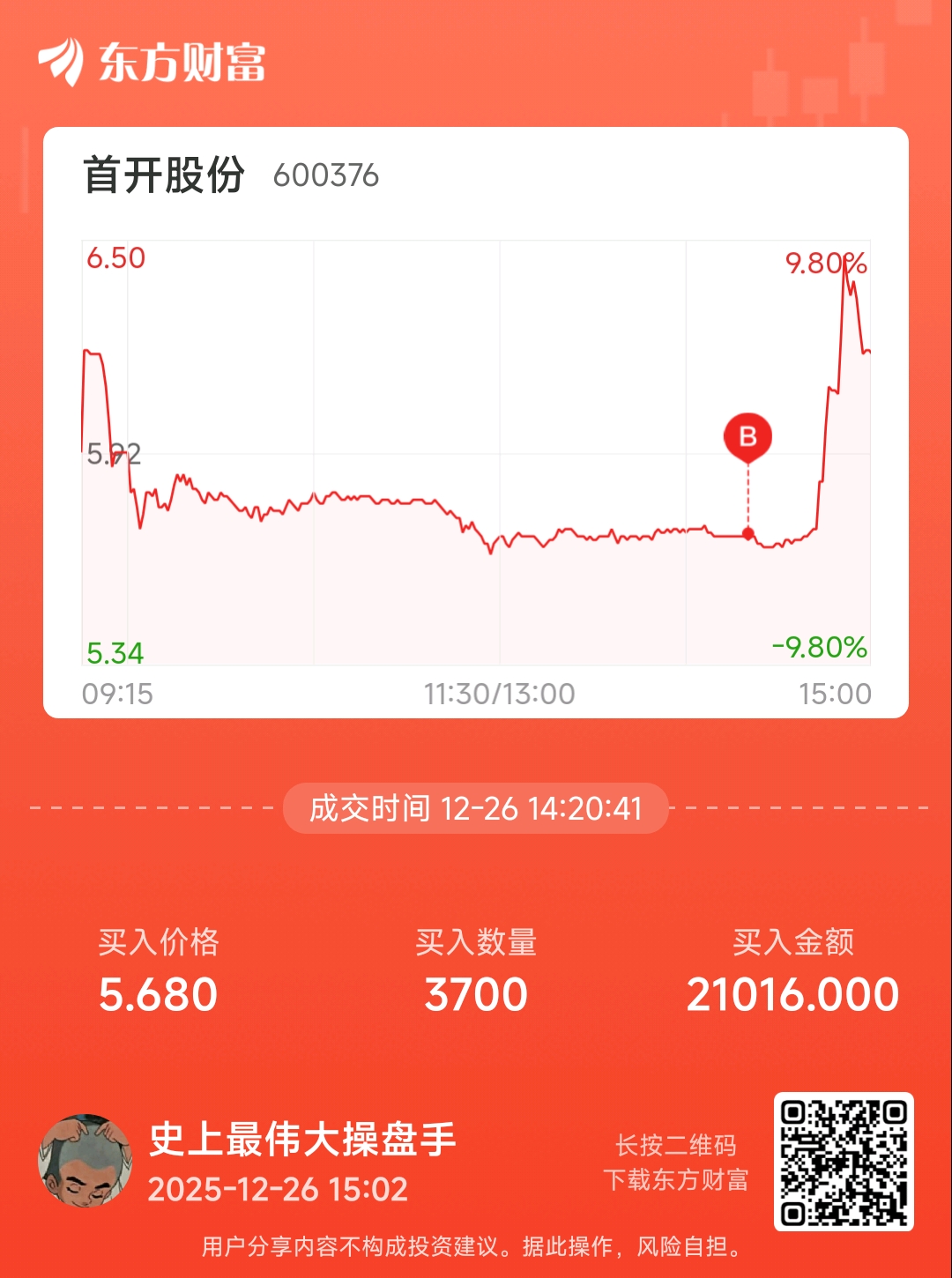 郑重声明:用户在财富号/股吧/博客等社区发表的所有信息(包括但不限于文字、视频、音频、数据及图表)仅代表个人观点,与本网站立场无关,不对您构成任何投资建议,据此操作风险自担。请勿相信代客理财、免费荐股和炒股培训等宣传内容,远离非法证券活动。请勿添加发言用户的手机号码、公众号、微博、微信及QQ等信息,谨防上当受骗!