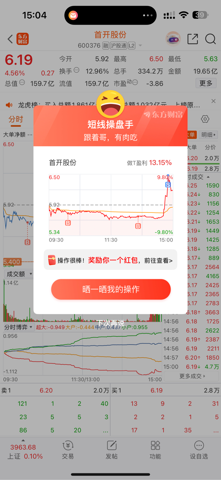 $首开股份(SH600376)$ 谢谢主力,虽然本金不多。但开心,第一次这样的操作