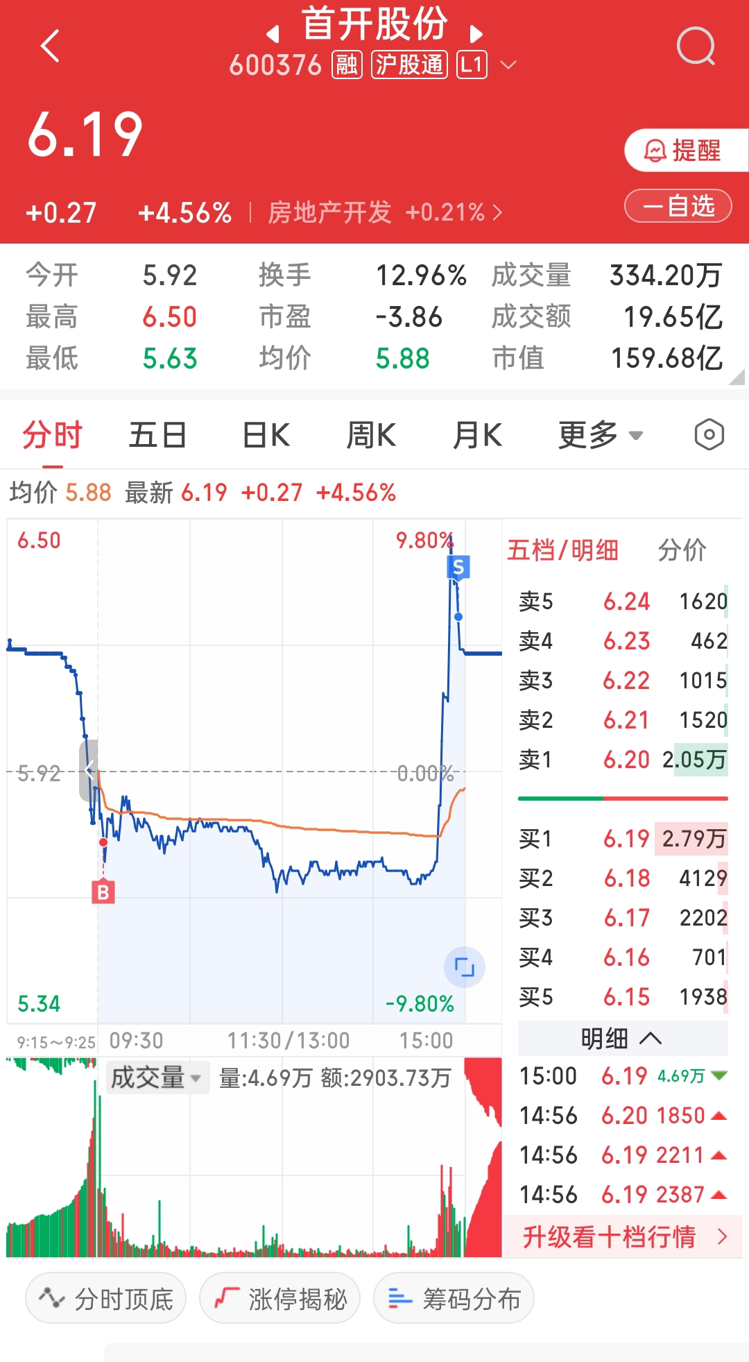 $首开股份(SH600376)$ 周五挂涨停板卖出做t,没卖掉,手动处理了