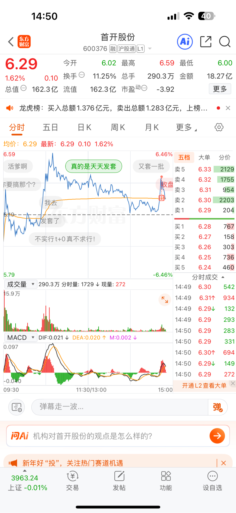 $首开股份(SH600376)$ 又是买崩的一天