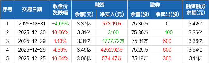 首开股份:融资净买入573.19万元,融资余额3.37亿元(12-31)