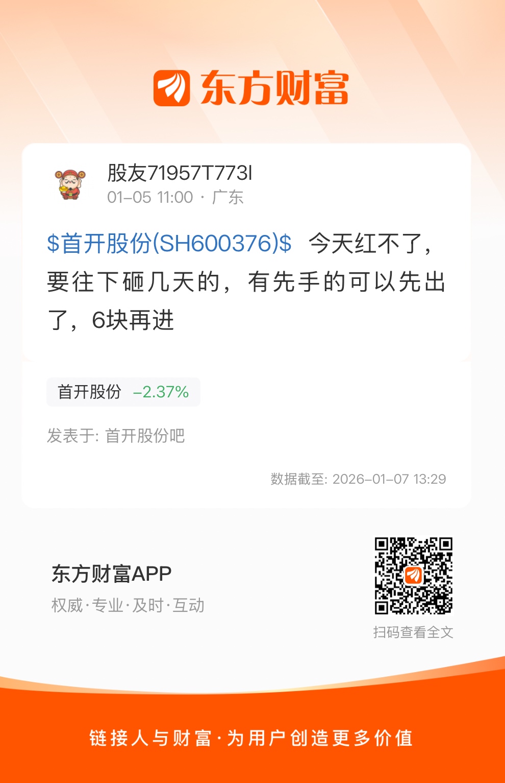 $首开股份(SH600376)$  今天红不了,要往下砸几天的,有先手的可以先出了,6块再进