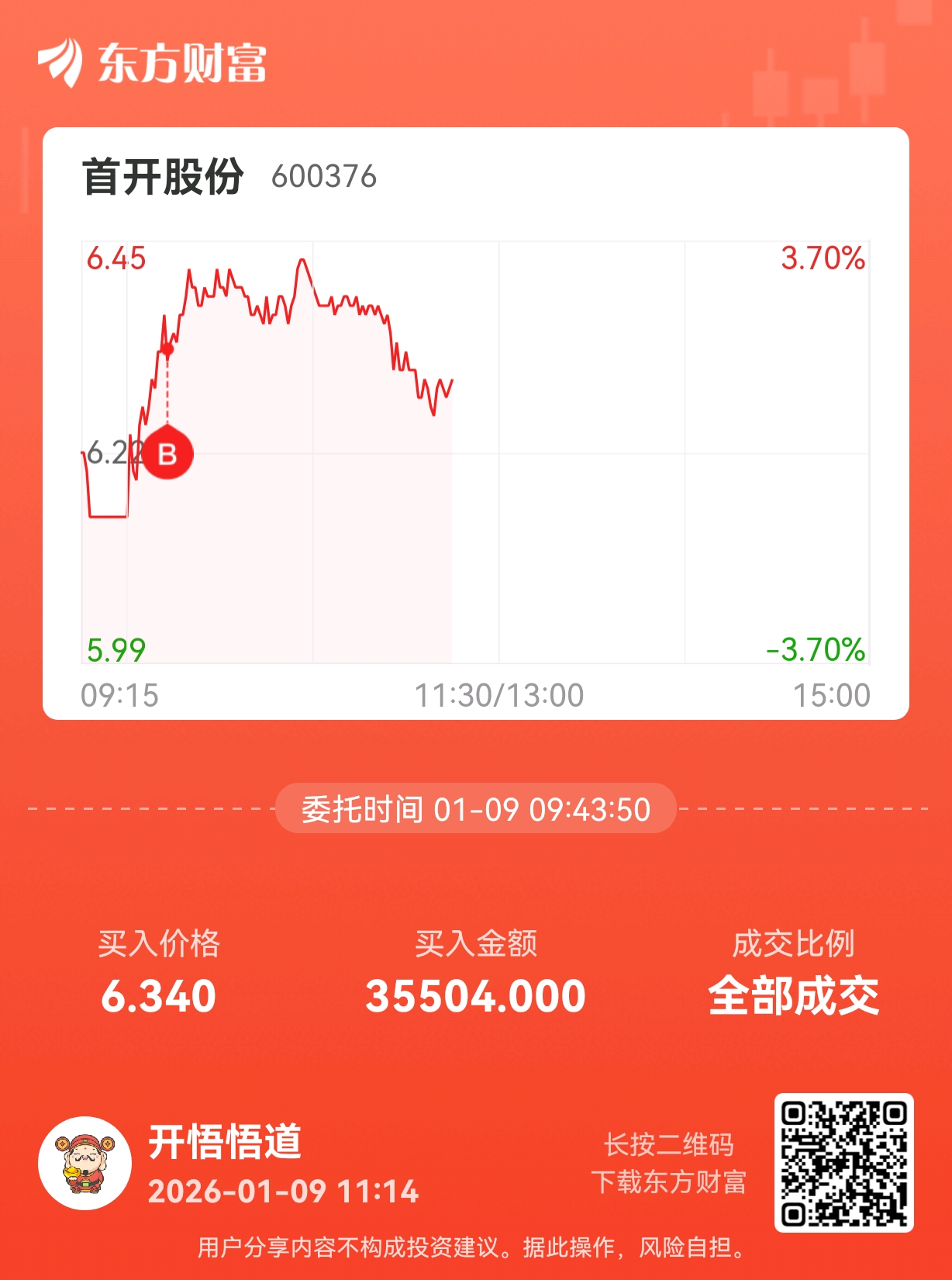 温馨提示: 1.根据《证券法》规定,禁止编造、传播虚假信息或者误导性信息,扰乱证券市场;2.用户在本社区发表的所有资料、言论等仅代表个人观点,与本网站立场无关,不对您构成任何投资建议。用户应基于自己的独立判断,自行决定证券投资并承担相应风险。《东方财富社区管理规定》