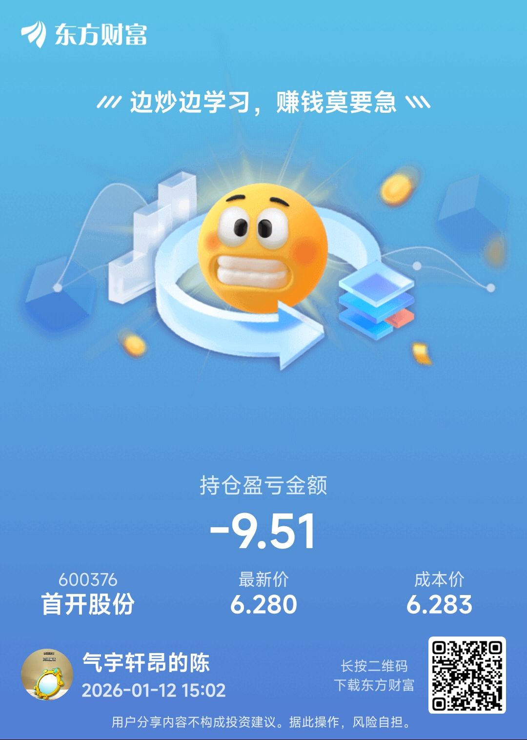 温馨提示: 1.根据《证券法》规定,禁止编造、传播虚假信息或者误导性信息,扰乱证券市场;2.用户在本社区发表的所有资料、言论等仅代表个人观点,与本网站立场无关,不对您构成任何投资建议。用户应基于自己的独立判断,自行决定证券投资并承担相应风险。《东方财富社区管理规定》