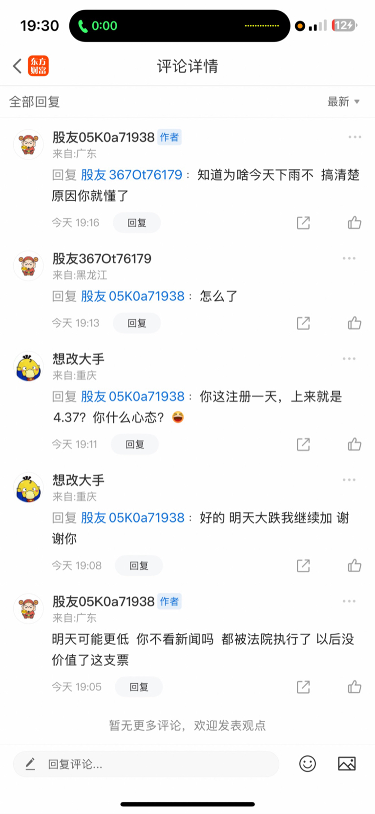 温馨提示: 1.根据《证券法》规定,禁止编造、传播虚假信息或者误导性信息,扰乱证券市场;2.用户在本社区发表的所有资料、言论等仅代表个人观点,与本网站立场无关,不对您构成任何投资建议。用户应基于自己的独立判断,自行决定证券投资并承担相应风险。《东方财富社区管理规定》