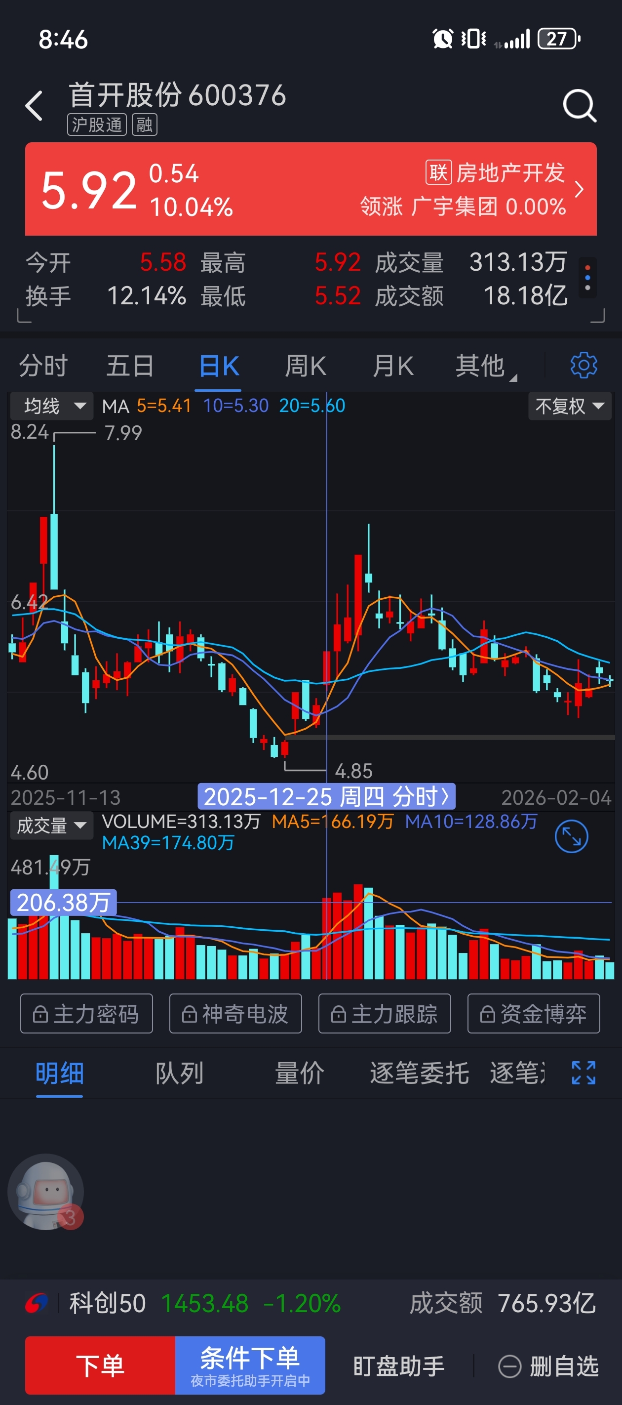$首开股份(SH600376)$ 昨天满仓首开了,和12.25那天走势一样,今天希望跳开涨停!