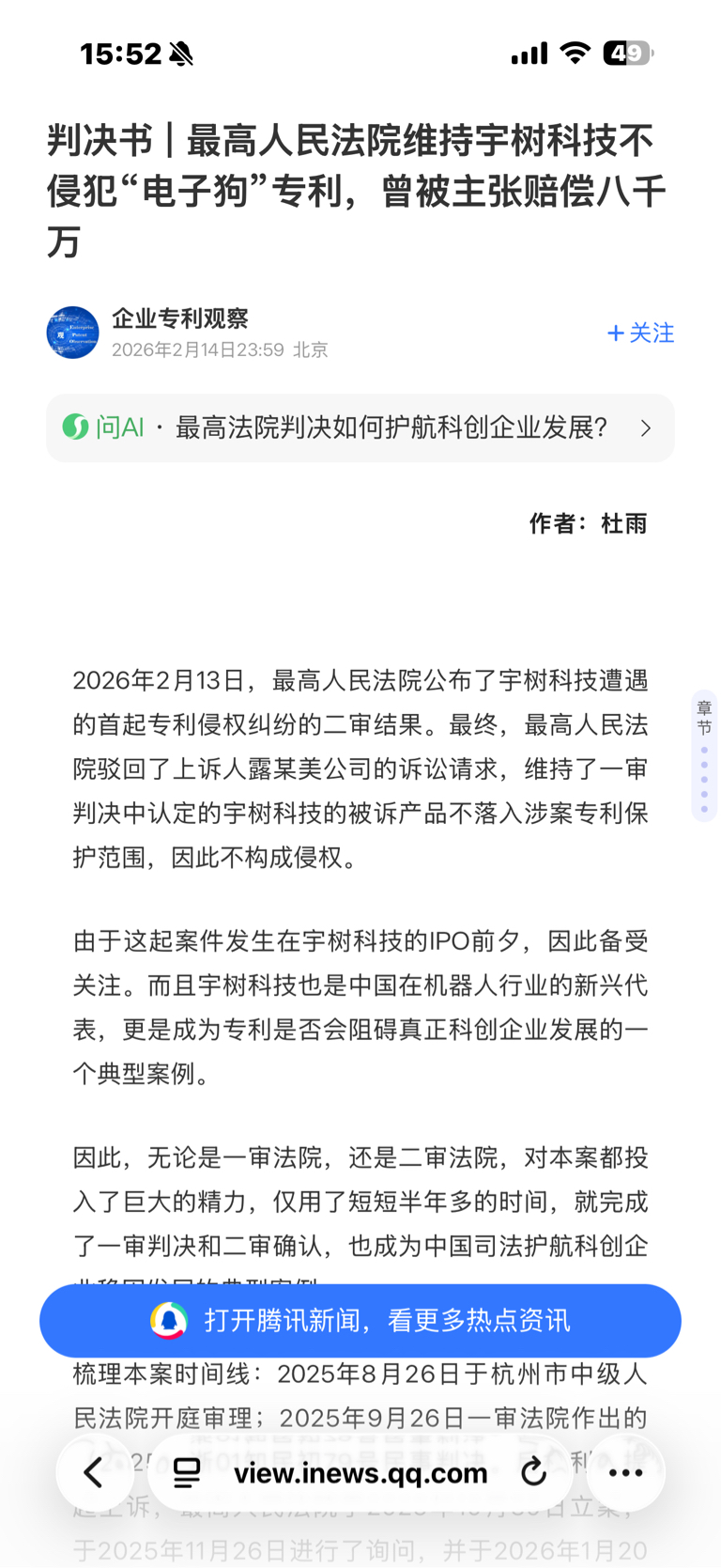 专利案二审2.13判了,提交招股书没有阻碍了,年后就有消息