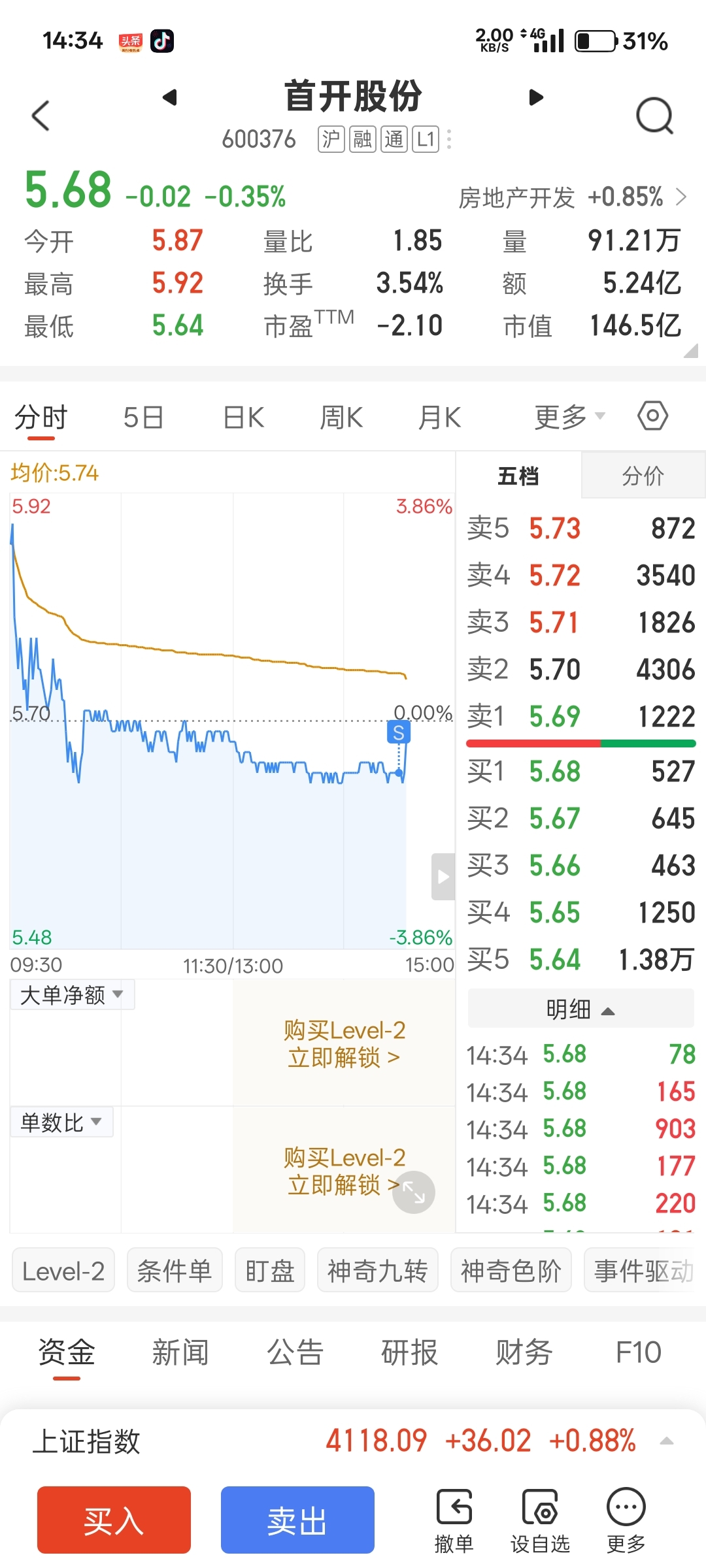 $首开股份(SH600376)$ 专门盯着我这几百手,刚卖就拉