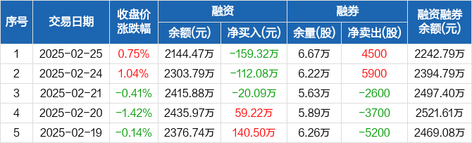 宁沪高速:融资余额2144.47万元,创近一年新低(02-25)