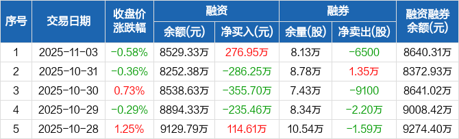 宁沪高速:融资净买入276.95万元,融资余额8529.33万元(11-03)