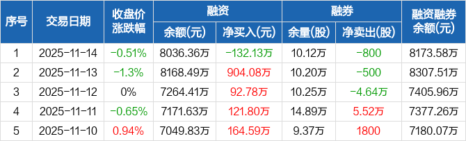 宁沪高速:融资净偿还132.13万元,融资余额8036.36万元(11-14)
