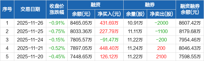 宁沪高速:融资净买入431.69万元,融资余额8465.05万元(11-26)