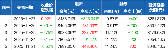 宁沪高速:融资净偿还326.34万元,融资余额8138.71万元(11-27)