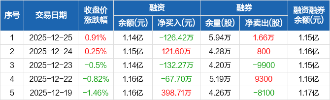 宁沪高速:融资净偿还126.42万元,融资余额1.14亿元(12-25)