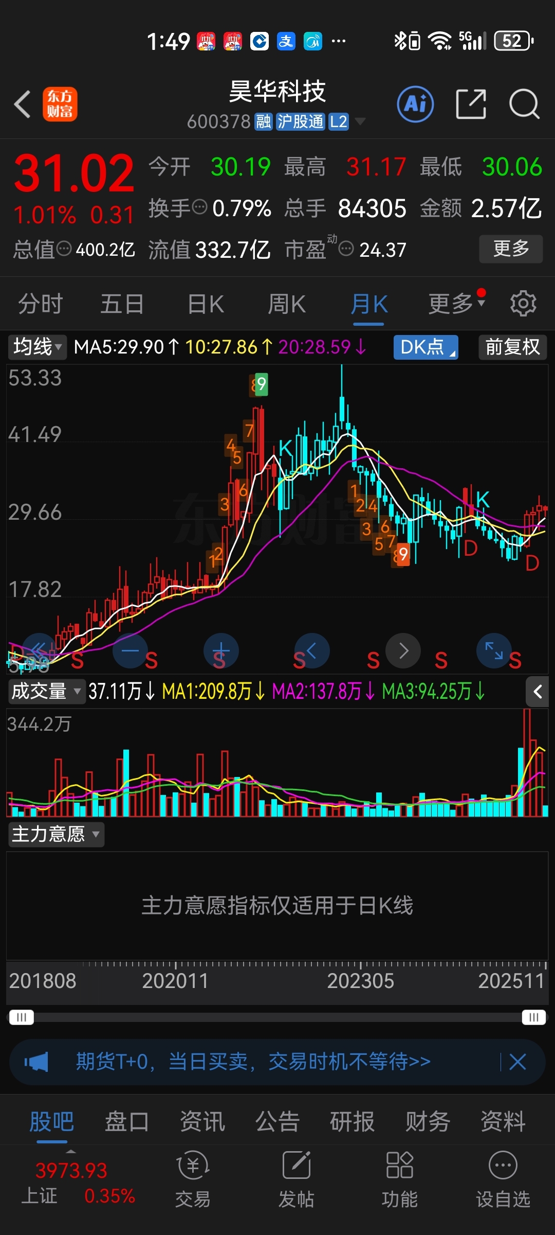 由于前面低价来增发,机构当时用脚来投票,其实就是买个金娃娃,月线小荷才露尖尖角,