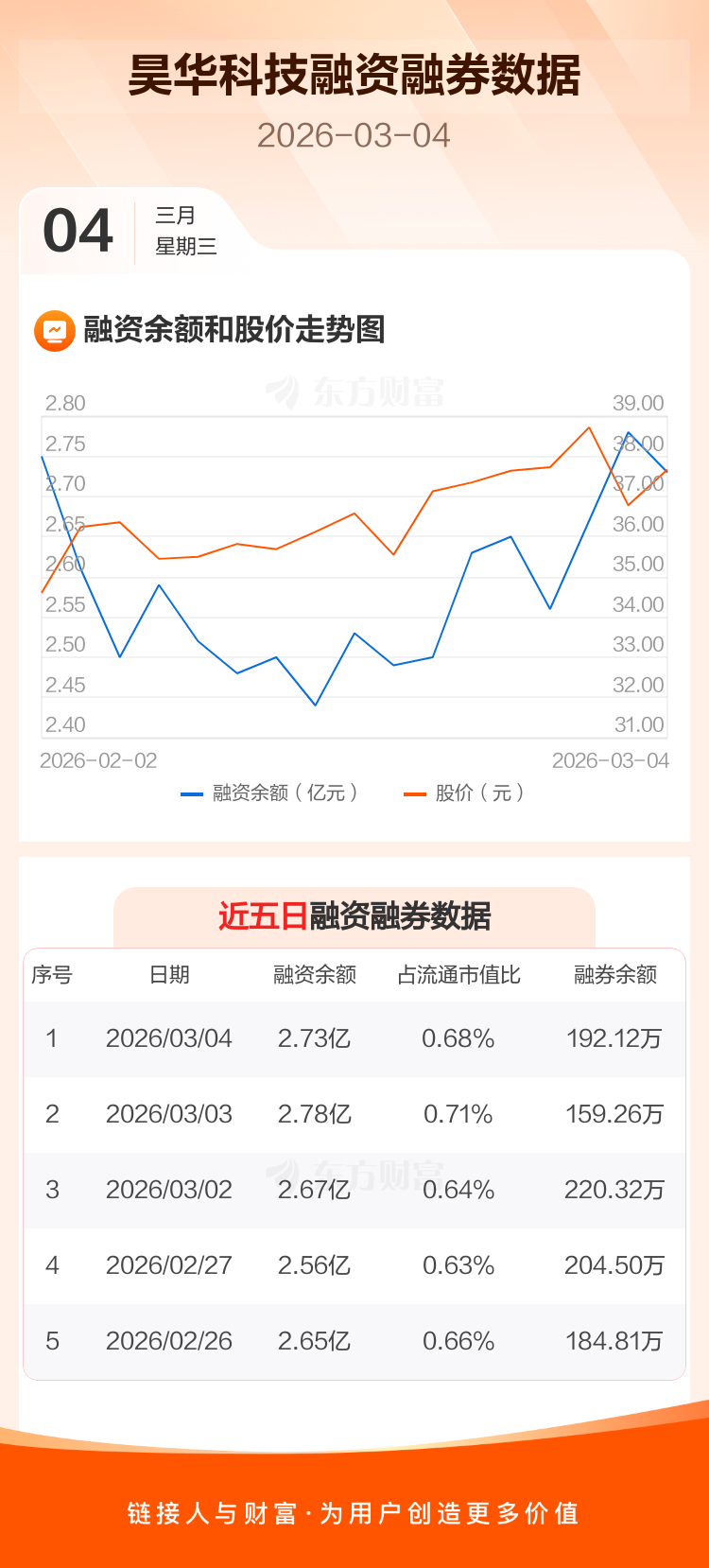 交易所最新数据显示,昊华科技于2026年3月4日获融资买入2700.63万元,融资偿还3273.27万元,当日融资净偿还572.63万元。目前,该股融资余额2.73亿,占流通市值比例为0.68%。
