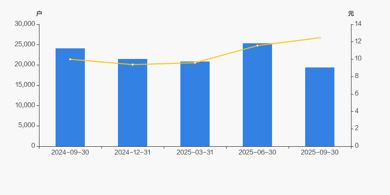 2024年9月30日至今,公司股东户数显著下降,区间跌幅为19.52%。2024年9月30日至2025年9月30日区间股价上涨24.78%。