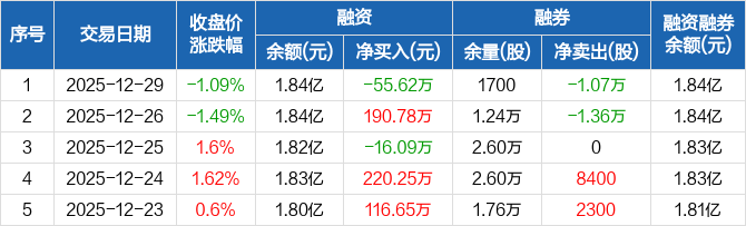 宝光股份:融资净偿还55.62万元,融资余额1.84亿元(12-29)