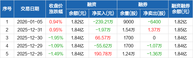 宝光股份:融资净偿还239.21万元,融资余额1.82亿元(01-05)