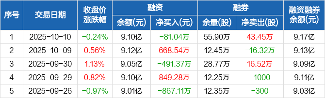 健康元:融资净偿还81.04万元,融资余额9.1亿元(10-10)