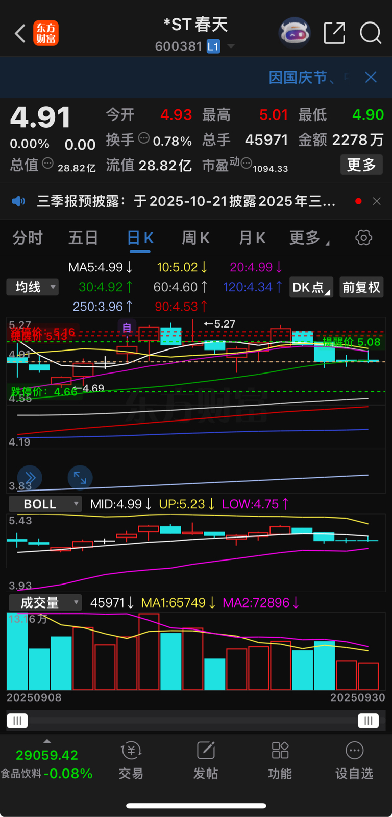 $*ST春天(SH600381)$ 这走势很明显受压上不去要往下了,K线上看是被中轨压制往下破位了!开始走下降通道了