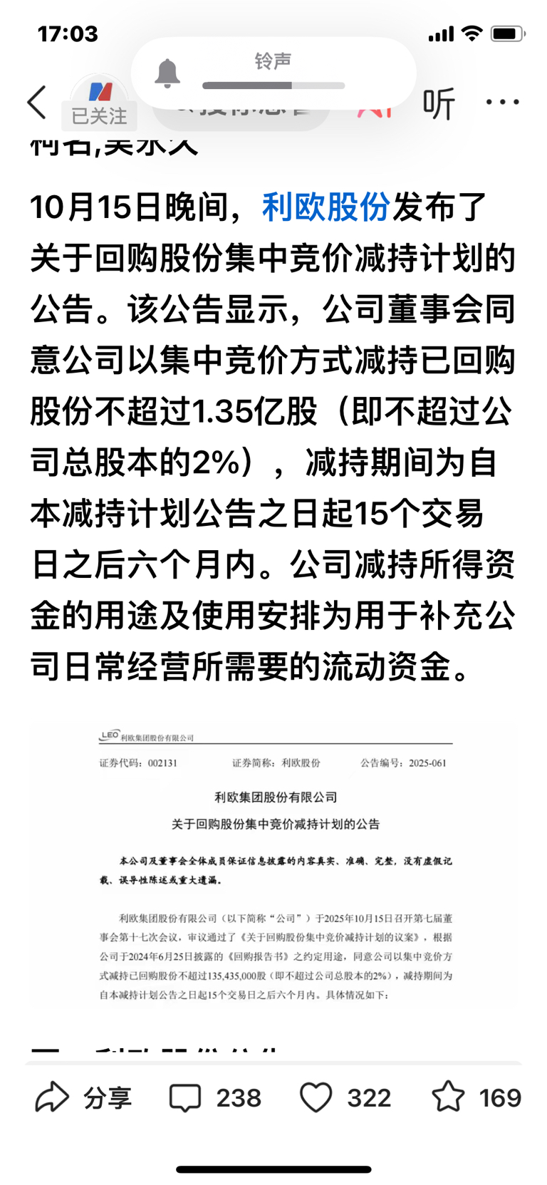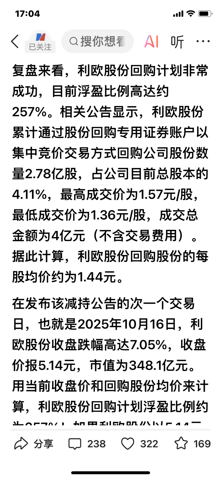 $*ST春天(SH600381)$ 看看利欧股份,估计春天也快了,1470万股,最好走大宗交易转给长期投资者或者白酒基金等,最好转给郎酒剑南春国台等未上市酒企!所得利润计入本年度盈利!